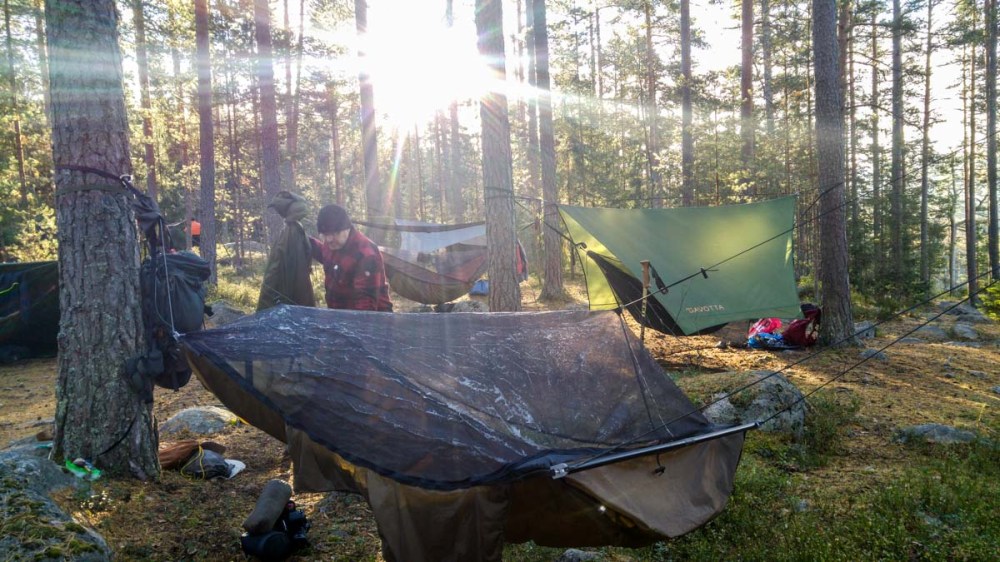 I had to help also Nella, since she didn’t know how to set up her hammock. She was using my older gear, TTTM double with DD underblanket and Savotta Tarp A. I usually have the DD UB in my WBB XLC, but Jani asked if i wanted to test his WB Wooki underquilt.