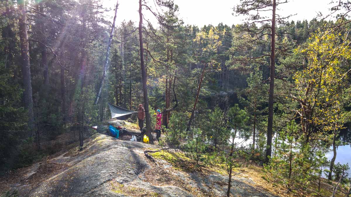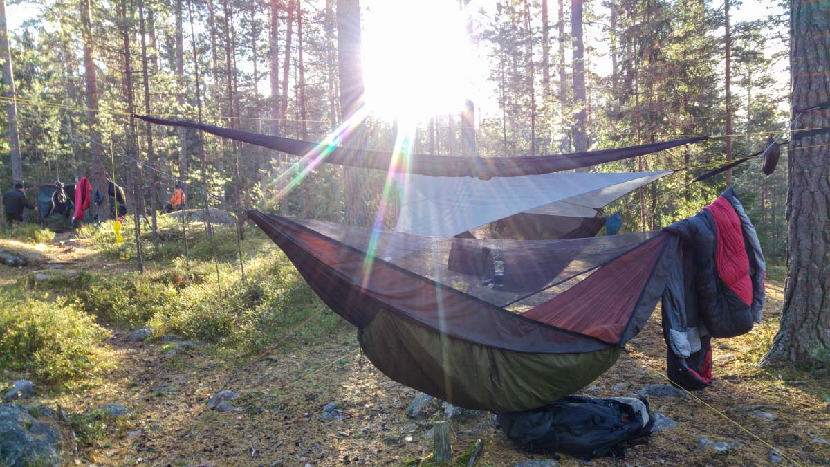 Couple of girls came to say hello to us, they are also in our Finnish hammock group, but they don’t have hammocks yet. So same time as we were checking each others setups, they got good information about hammocks and what they need to know about certain models.